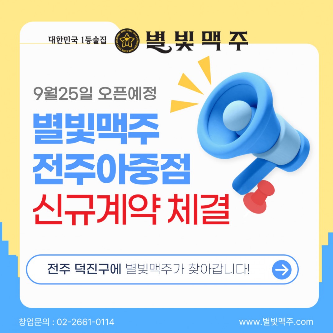 전주시민들에게 '별빛맥주'의 다양한 주류와 가성비 높은 메뉴를 선보일수 있게 되어 기쁘며